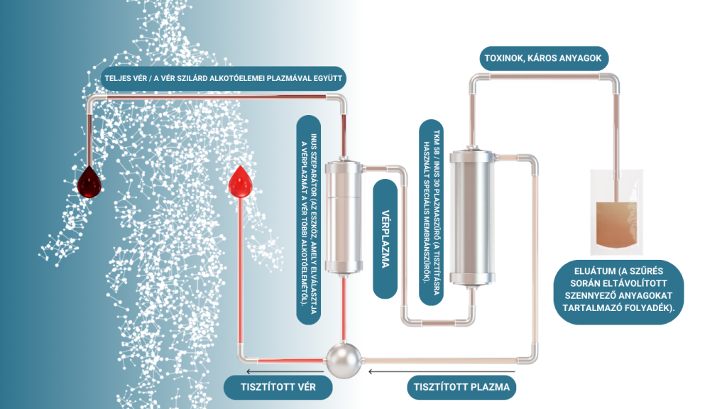Ebben a biofizikai eliminációs folyamatban a páciens teljes vérplazmája egy speciális szűrőn keresztül áramlik át, amely eltávolítja a különböző káros anyagokat.